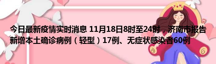 您的位置:首页 >房产频道 > 综合精选 > 今日最新疫情实时消息 11月18日8时至24时,济南市报告新增本土确诊病例(轻型)17例、无症状感染者60例 2022-12-13 14:52:16 • 来源: 导读 免责声明:本文由用户上传,如有侵权请联系删除! 上一篇:为什么北岛回不了家? 下一篇:今日最新疫情实时消息 广西11月18日新增本土确诊6例、本土无症状72例