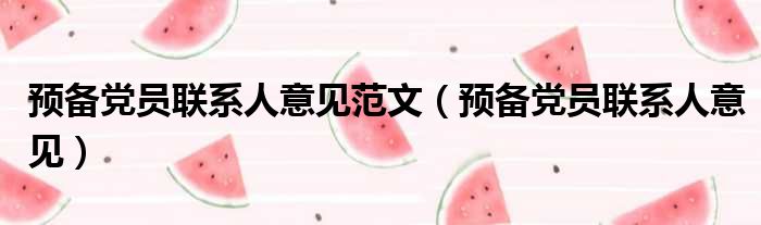 导读 大家好,今天小六子来为大家解答以下的问题,关于预备党员联系人意见范文,预备党员联系人意见这个很多人还不知道,现在让我们一起来看看吧