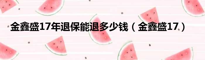 金鑫盛17年退保能退多少钱(金鑫盛17)