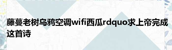 导读 大家好,今天小六子来为大家解答以下的问题,关于藤蔓老树乌鸦空调wifi西瓜rdquo求上帝完成这首诗这个很多人还不知道,现在让我们一起来看看