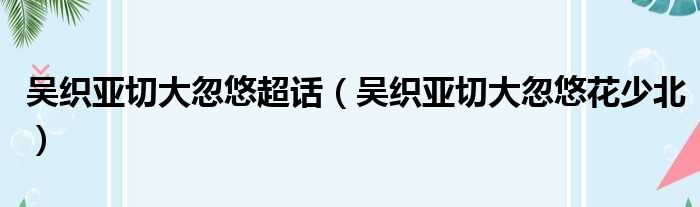 吴织亚切大忽悠超话(吴织亚切大忽悠花少北)