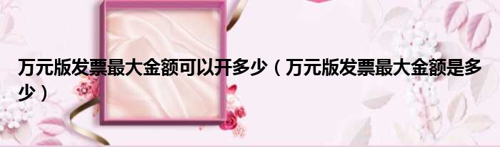 万元版发票最大金额可以开多少(万元版发票最大金额是多少)