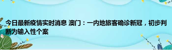 今日最新疫情实时消息 澳门:一内地旅客确诊新冠,初步判断为输入性个案