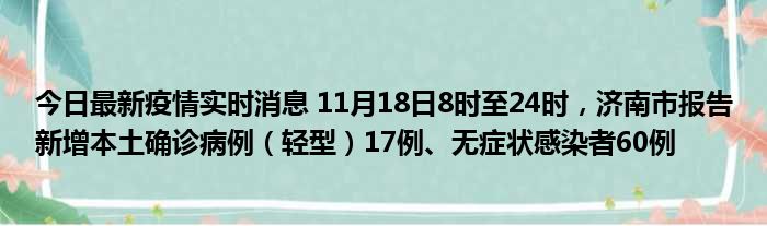 您的位置:首页 >房产频道 > 综合精选 > 今日最新疫情实时消息 11月18日8时至24时,济南市报告新增本土确诊病例(轻型)17例、无症状感染者60例 2022-12-14 04:14:13 • 来源: 导读 免责声明:本文由用户上传,如有侵权请联系删除! 上一篇:etc官方软件(etc官网北京) 下一篇:如何建立健全党内监督体系