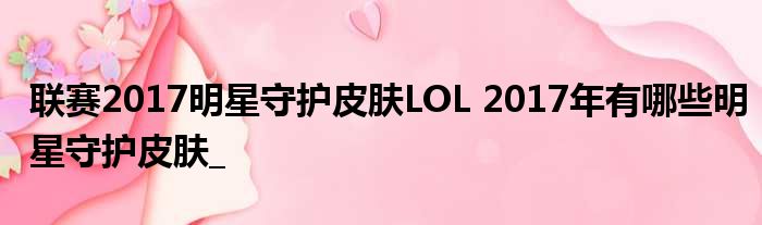 导读 大家好,今天小六子来为大家解答以下的问题,关于联赛2017明星守护皮肤LOL 2017年有哪些明星守护皮肤_这个很多人还不知道,现在让我们一起