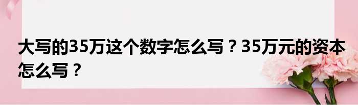 导读 大家好,今天小六子来为大家解答以下的问题,关于大写的35万这个数字怎么写?35万元的资本怎么写?这个很多人还不知道,现在让我们一起来看