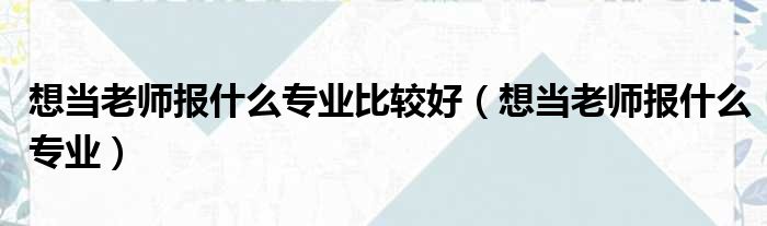 导读 大家好,今天小六子来为大家解答以下的问题,关于想当老师报什么专业比较好,想当老师报什么专业这个很多人还不知道,现在让我们一起来看看