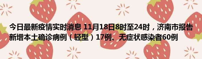 您的位置:首页 >房产频道 > 综合精选 > 今日最新疫情实时消息 11月18日8时至24时,济南市报告新增本土确诊病例(轻型)17例、无症状感染者60例 2022-12-14 07:14:16 • 来源: 导读 免责声明:本文由用户上传,如有侵权请联系删除! 上一篇:微信水滴保险比较靠谱 下一篇:分米的符号怎么表示(分米的符号)