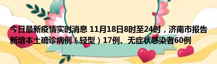 您的位置:首页 >房产频道 > 综合精选 > 今日最新疫情实时消息 11月18日8时至24时,济南市报告新增本土确诊病例(轻型)17例、无症状感染者60例 2022-12-14 08:34:16 • 来源: 导读 免责声明:本文由用户上传,如有侵权请联系删除! 上一篇:虎牙直播银豆怎么提现(虎牙直播银豆怎么换钱啊) 下一篇:今日最新疫情实时消息 广西11月18日新增本土确诊6例、本土无症状72例