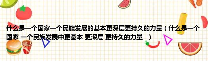 什么是一个国家一个民族发展的基本更深层更持久的力量(什么是一个国家 一个民族发展中更基本 更深层 更持久的力量 _)