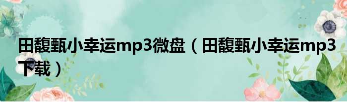 导读 大家好,今天小六子来为大家解答以下的问题,关于田馥甄小幸运mp3微盘,田馥甄小幸运mp3下载这个很多人还不知道,现在让我们一起来看看吧!1