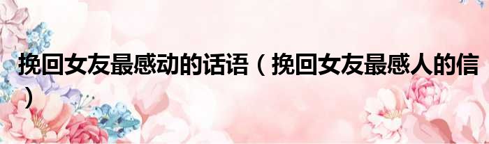 大家好,今天小六子来为大家解答以下的问题,关于挽回女友最感动的话语,挽回女友最感人的信这个很多人还不知道,现在让我们一起来看看吧!