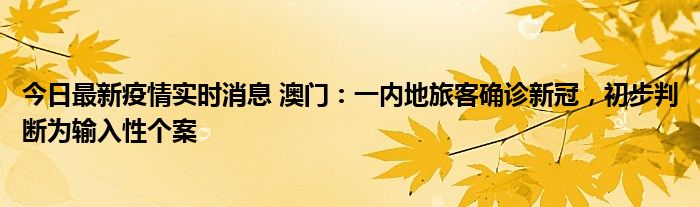 今日最新疫情实时消息 澳门:一内地旅客确诊新冠,初步判断为输入性个案