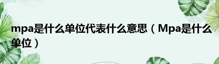 mpa是什么单位代表什么意思(Mpa是什么单位)