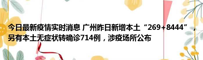 今日最新疫情实时消息 广州昨日新增本土“269+8444”,另有本土无症状转确诊714例,涉疫场所公布
