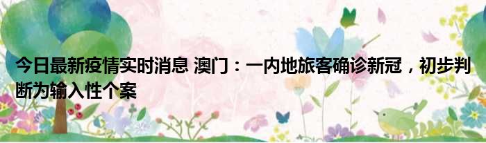 今日最新疫情实时消息 澳门:一内地旅客确诊新冠,初步判断为输入性个案