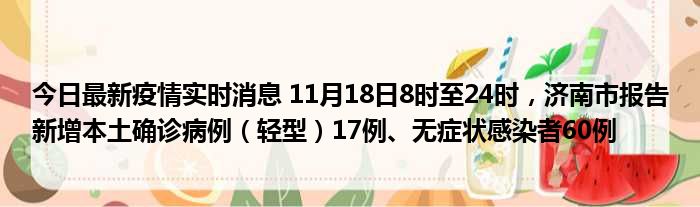 您的位置:首页 >房产频道 > 综合精选 > 今日最新疫情实时消息 11月18日8时至24时,济南市报告新增本土确诊病例(轻型)17例、无症状感染者60例 2022-12-14 15:14:13 • 来源: 导读 免责声明:本文由用户上传,如有侵权请联系删除! 上一篇:昨天双色球开奖结果是什么(昨天双色球开奖结果) 下一篇:南京市行政区划调整(南京市行政区划)