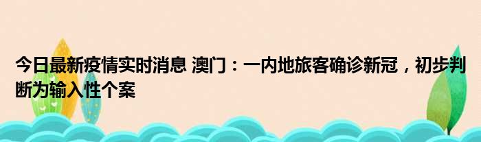 今日最新疫情实时消息 澳门:一内地旅客确诊新冠,初步判断为输入性个案