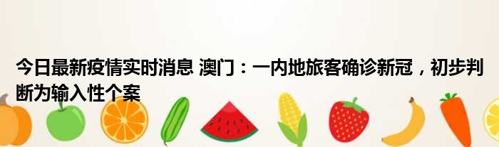 今日最新疫情实时消息 澳门:一内地旅客确诊新冠,初步判断为输入性个案