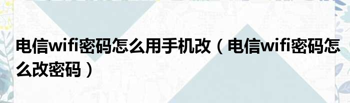 电信wifi密码怎么用手机改(电信wifi密码怎么改密码)