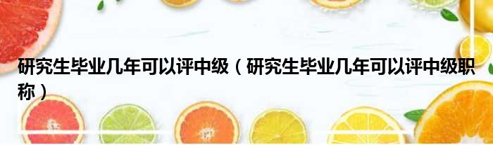 研究生毕业几年可以评中级(研究生毕业几年可以评中级职称)
