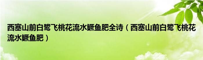 西塞山前白鹭飞桃花流水鳜鱼肥全诗(西塞山前白鹭飞桃花流水鳜鱼肥)