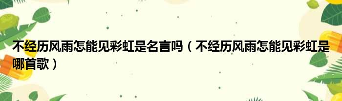 不经历风雨怎能见彩虹是名言吗(不经历风雨怎能见彩虹是哪首歌)