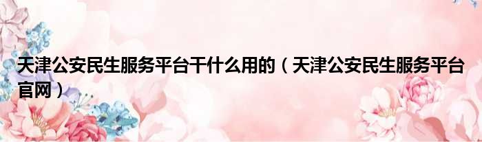 天津公安民生服务平台干什么用的(天津公安民生服务平台官网)