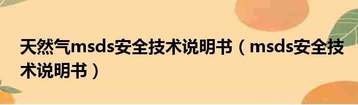 天然气msds安全技术说明书(msds安全技术说明书)