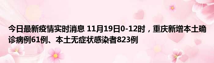 据央视新闻,11月19日,重庆市新冠肺炎疫情防控工作新闻发布会(第144场)通报,11月19日0-12时,重庆市新增本土确诊病例61例,新增本土无症状感染者823例,新增阳性待诊断人员2251人