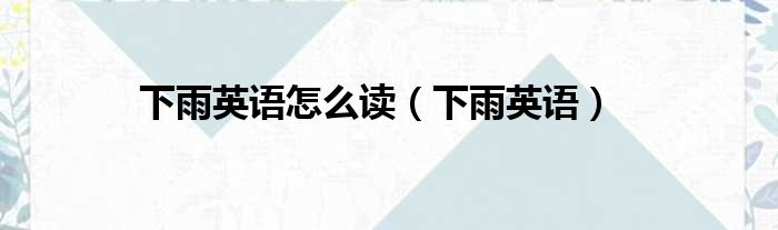 导读 大家好,今天小六子来为大家解答以下的问题,关于下雨英语怎么读,下雨英语这个很多人还不知道,现在让我们一起来看看吧!1、下雨可以用英语