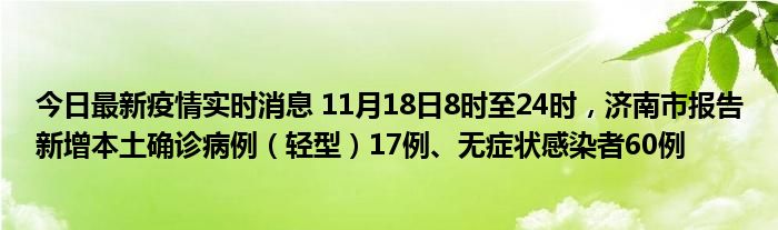 您的位置:首页 >房产频道 > 综合精选 > 今日最新疫情实时消息 11月18日8时至24时,济南市报告新增本土确诊病例(轻型)17例、无症状感染者60例 2022-12-15 05:14:33 • 来源: 导读 免责声明:本文由用户上传,如有侵权请联系删除! 上一篇:自转和公转有什么联系(自转和公转有什么区别) 下一篇:脚英语单词怎么写的(脚英语单词)