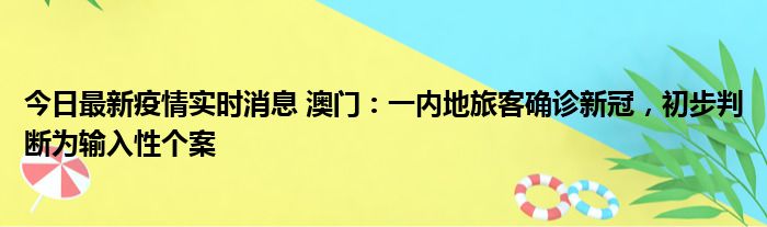 今日最新疫情实时消息 澳门:一内地旅客确诊新冠,初步判断为输入性个案