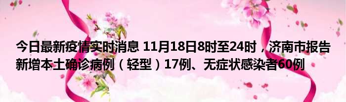 您的位置:首页 >房产频道 > 综合精选 > 今日最新疫情实时消息 11月18日8时至24时,济南市报告新增本土确诊病例(轻型)17例、无症状感染者60例 2022-12-15 06:56:16 • 来源: 导读 免责声明:本文由用户上传,如有侵权请联系删除! 上一篇:离婚证图片真实样本2021(离婚证图片) 下一篇:哪里的天空不下雨粤语原唱(哪里的天空不下雨)