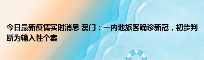 今日最新疫情实时消息 澳门:一内地旅客确诊新冠,初步判断为输入性个案