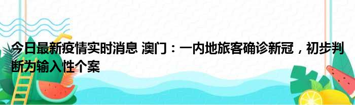 今日最新疫情实时消息 澳门:一内地旅客确诊新冠,初步判断为输入性个案