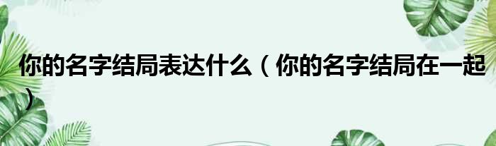 大家好,今天小六子来为大家解答以下的问题,关于你的名字结局表达什么,你的名字结局在一起这个很多人还不知道,现在让我们一起来看看吧!