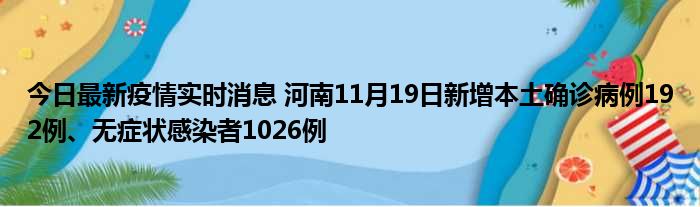 今日最新疫情实时消息 河南11月19日新增本土确诊病例192例、无症状感染者1026例