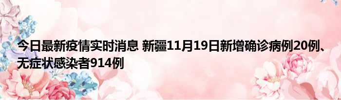 11月20日,新疆卫健委通报:11月19日0时至24时,新疆维吾尔自治区新增确诊病例20例,新增无症状感染者914例,新增确诊病例治愈出院6例,