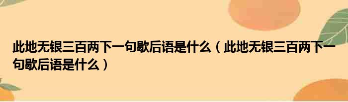 此地无银三百两下一句歇后语是什么(此地无银三百两下一句歇后语是什么)