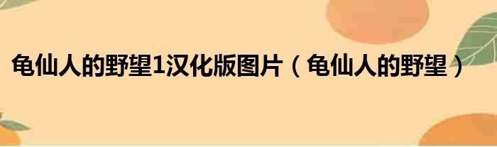 导读 大家好,今天小六子来为大家解答以下的问题,关于龟仙人的野望1汉化版图片,龟仙人的野望这个很多人还不知道,现在让我们一起来看看吧!1、
