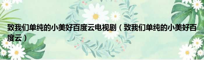 致我们单纯的小美好百度云电视剧(致我们单纯的小美好百度云)
