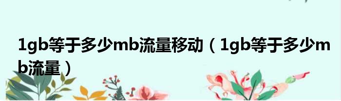 1gb等于多少mb流量移动(1gb等于多少mb流量)