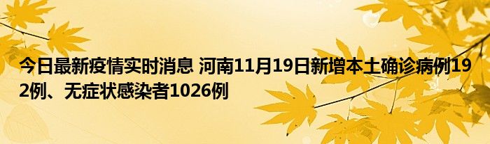今日最新疫情实时消息 河南11月19日新增本土确诊病例192例、无症状感染者1026例