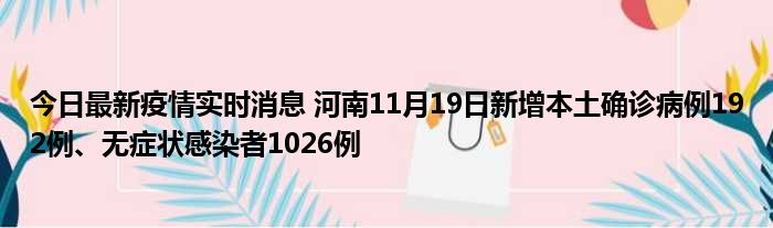 今日最新疫情实时消息 河南11月19日新增本土确诊病例192例、无症状感染者1026例