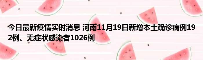 今日最新疫情实时消息 河南11月19日新增本土确诊病例192例、无症状感染者1026例