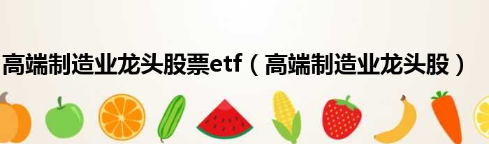 导读 大家好,今天小六子来为大家解答以下的问题,关于高端制造业龙头股票etf,高端制造业龙头股这个很多人还不知道,现在让我们一起来看看吧!1