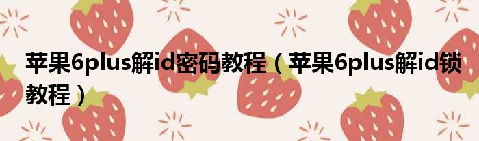 大家好,今天小六子来为大家解答以下的问题,关于苹果6plus解id密码教程,苹果6plus解id锁教程这个很多人还不知道,现在让我们一起来看看吧!