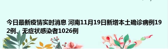 今日最新疫情实时消息 河南11月19日新增本土确诊病例192例、无症状感染者1026例