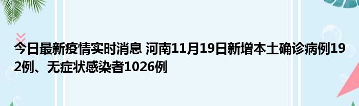今日最新疫情实时消息 河南11月19日新增本土确诊病例192例、无症状感染者1026例
